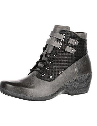 Studio : Rocky Brands Inc Publisher : Rocky Brands Inc Binding : Apparel Product Description With an undeniably fashionable silhouette, the Concerto Wedge Ankle Boot is a definite winner for your winter wardrobe. Dual hook and loop straps across the shaft plus matching laces create a fun appeal through the use of lines and textures. A guaranteed waterproof construction and the oil and slip-resistant recycled rubber outsole means that you don't need to worry about where you step when you're wearing these eye-catching booties. An anti-microbial microfiber lining and leather-lined EurSole Comfort System removable footbed ensures a fresh and luxuriously comfortable interior. Guaranteed waterproof Two adjustable hook and loop straps Anti-microbial, microfiber lining All leather footbed lining EurSole Comfort System with removable comfort footbed Oil and slip-resistant Recycled rubber outsole. 0