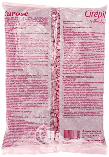 This 800 grams package of refill beads can be used to fill any heating container. Elva rose is the new generation non strip wax derived from the combination of polymerization of Cirepil's blue with the creaminess of Cirepil's traditional pink wax. It has a supple texture that keeps skin smooth and soft. This wax works particularly well on fine to medium hair in sensitive areas such as underarms, bikini, and face. Directions 1. Pour beads into a professional wax heater. Within 20 to 30 minutes, wax should be warm and creamy. 2. Test temperature of wax on the inside of your wrist. Wax should be close to body temperature. 3. Prepare the area to be waxed with Cirepil blue lotion. Massage one drop of Cirepil pre depilatory oil into the area of skin to be waxed. Blot with tissue to remove excess oil from skin. 4. Using a wooden disposable spatula, take a quarter sized amount of wax, smooth the underside of the spatula against the tin, turn spatula evenly for several rotations to lesson dripping. 5. Deposit wax onto skin using edge of spatula and spread. Apply pressure in the direction of the hair growth. The narrow section of wax should be applied thinly and evenly with an edge around the perimeter for easy wax removal. 6. Lift the ridge and remove the wax parallel and close to the skin in the opposite direction of hair growth. Be sure to allow time to let wax set before removal. Body and room temperature may slow the process. 7. Apply perron rigot after wax gel and/or moisturizing lotion for a cooling, soothing, and hydrating finish.Feature