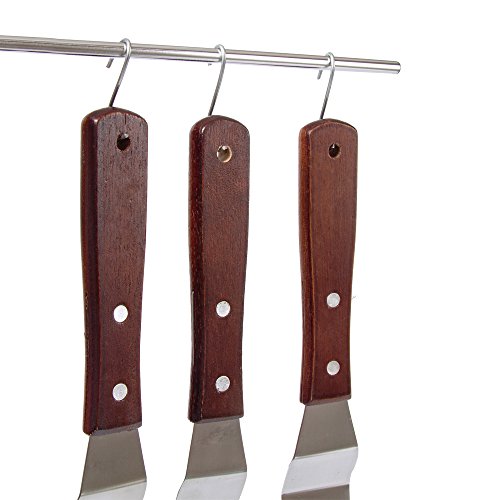 - The ergonomic wood handle with hole of these angled icing spatula is lightweight and feel very comfortable to grip in your hand. The hole make it easy to hang and storage.