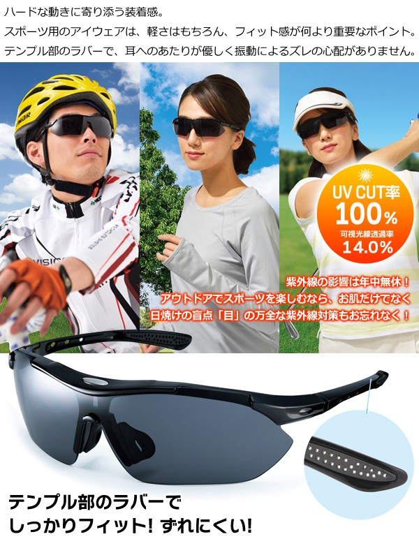 | ハードな動きに寄り添う装着感。 スポーツ用のアイウェアは、軽さはもちろん、フィット感が何より重要なポイント。 テンプル部のラバーで、耳へのあたりが優しく振動によるズレの心配がありません。 紫外線の影響は年中無休!アウトドアでスポーツを楽しむなら、お肌だけでなく、 日焼けの盲点「目」の万全な紫外線対策もお忘れなく! 収納用の専用ポーチ付き。 |