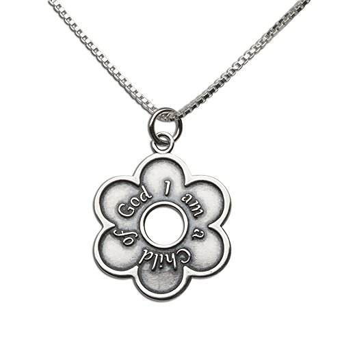 -. Feature : Girl's Sterling Silver "I Am a Child of God" Daisy Charm (22mm x 17mm) / Great First Communion or Baptism Gift / Sterling Silver High-Quality 14 inch Box Chain / Necklace Comes in a Beautiful Gift Box / Keepsake Quality, Durable
