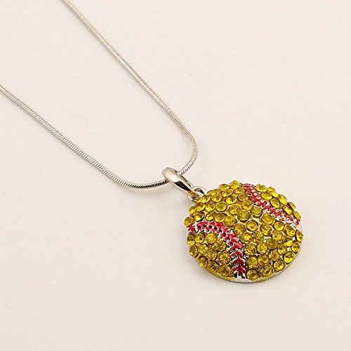 -. Title : Winter's Secret Popular Creative Sport Softball Diamond Accented Yellow Pendant Necklace