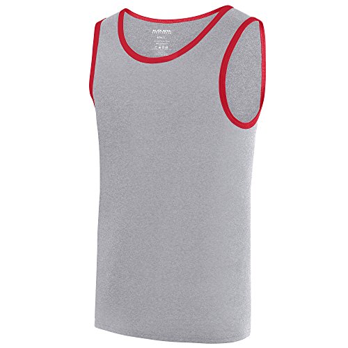 Product Description50% polyester/50% cotton jersey knit * Contrast color rib-knit binding on armholes and neck * Pad print label * Double-needle hemmed bottom.0