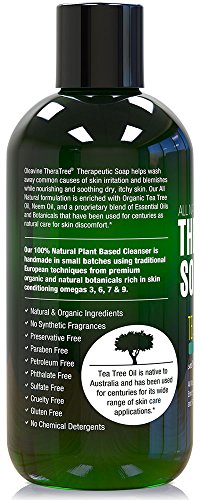 -. Feature : ORGANIC & NATURAL INGREDIENTS (NO HARMFUL CHEMICALS!!!) NO Preservatives, Thickeners, Detergents, Petroleum, Silicone, Synthetic Fragrance or Dyes. / CONCENTRATED VALUE SIZE - Rich Foaming Action and Concentrated Liquid Solution Formula Means a Little Goes a Long Way. Gentle Enough for Daily Use. Ideal for Athletes. Can be Used as an Effective Foot Soak. / STRONG DEFENSE - Helps Wash Away and Defend Against Fungus & Bacteria Responsible for Body Odor, Athlete's Foot, Ringworm, Jock Itch, Acne, Toenail & Nail Fungus, Yeast, and other Common Foot, Back, Chest, Butt and Skin Irritation. Ideal for Smelly Feet and Body Odor Eliminator. / SOOTHES ITCHY, SCRATCHY, DRY, INFLAMMED SKIN - Infused with Nourishing Botanicals Rich in Skin Moisturizing Omegas 3, 6, 7 & 9. Scented with Cooling Mixed Mint Essential Oil Which Invigorates and Smells Wonderful. Soothing Body Wash For Men and Women. / BROAD SPECTRUM - Enriched with Tea Tree Essential Oil, Broad Spectrum Essential Oils, and Antibacterial Extracts Including Neem Oil that have been used for centuries for Skin Discomfort, Oleavine Soap helps provide relief.