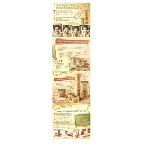 -. Feature : Salmon Eye Cream To help fade dark circles and wrinkles, dark spots, freckles and bright eyes. / Skin care dark circles around the eyes. / Skin is moist , not dry and arbutin to help clear up the eye . / Suitable for all skin / 30 g Product of Thailand (Ship from Thailand).