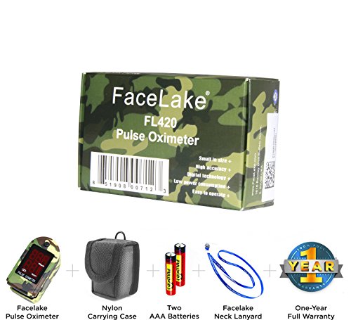 FaceLake FL420 Pulse Oximeter with Carrying Case, Batteries, Neck/Wrist Cord, Camo From the factory, there is a clear screen protector which can be removed before use. Notes: # Nail polish can influence the accuracy of measurements. # Please keep your body and hand stable. Readings can be taken after the pulse diagram has stabilized. NOTE: This device is for Sports & Aviation use only and is not a medical device.Feature
