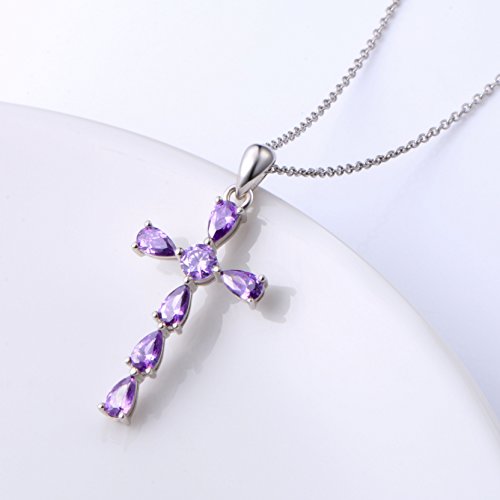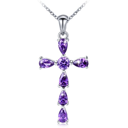-. Feature : Theme : Heart shape purple stone make up a cross, elegant design. / Material: 925 Hypoallergenic Sterling Silver,Tarnish Resistant, Nickel Free / Pendant Size : 15.7 * 29.7 mm ; Chain Length : 18 inches ; Pendant Weight : 2.4 g ; / Package :1 * S925 Pendant , 1 * S925 Chain , 1 * Gift Box , 1 * Clean Cloth ; / Imported