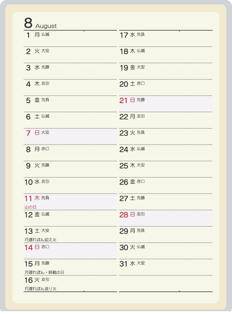 【Horizontal Key Type Monthly Calendar】