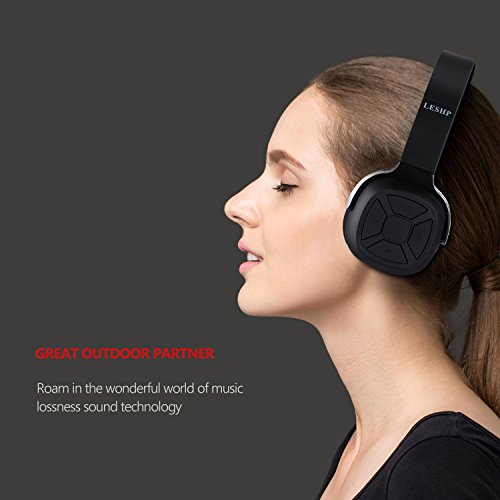 LESHP Over Ear Wireless NFC Folding Bluetooth 4.0 Headset with Smart Pedometer Function Sports for iphone and other Ios Android Smartphones, Built in Mic Hands-Free Call (Black)