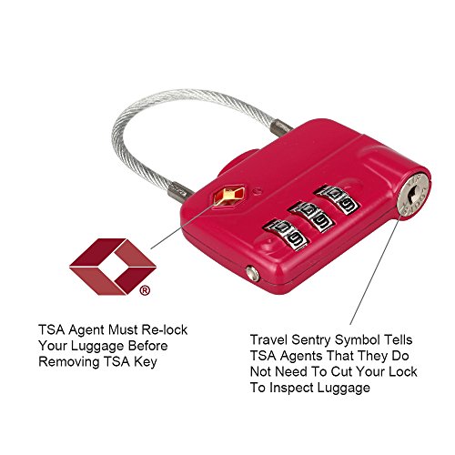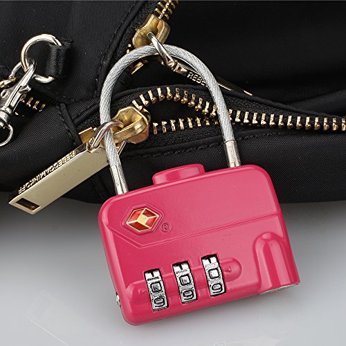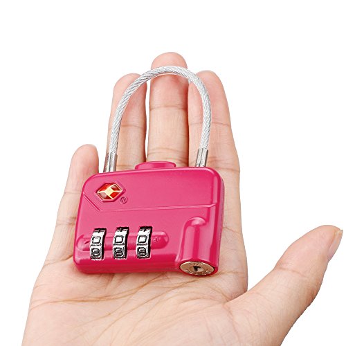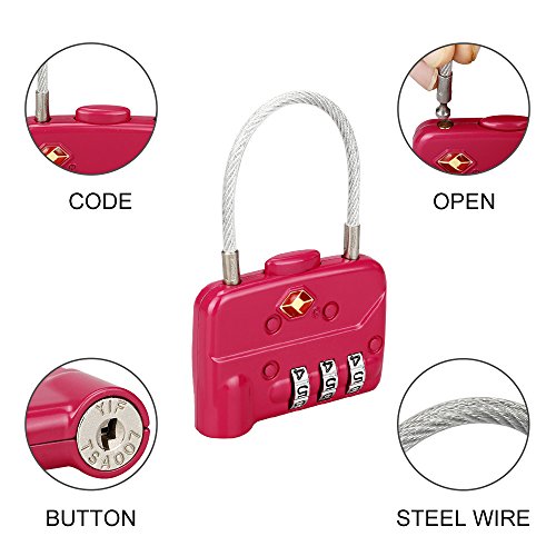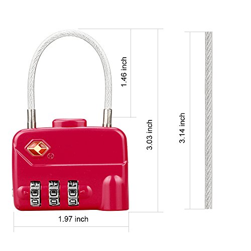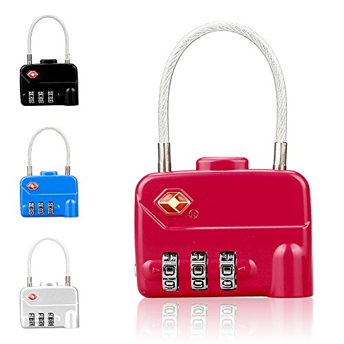 LUCKSTAR TSA Combination Lock - 3 Dial Travel Padlock (Steel Wire + Alloy) Password Lock for Luggage / Suitcase / Baggage Toolbox / Fence / Hasp Cabinet / Storage (Red)