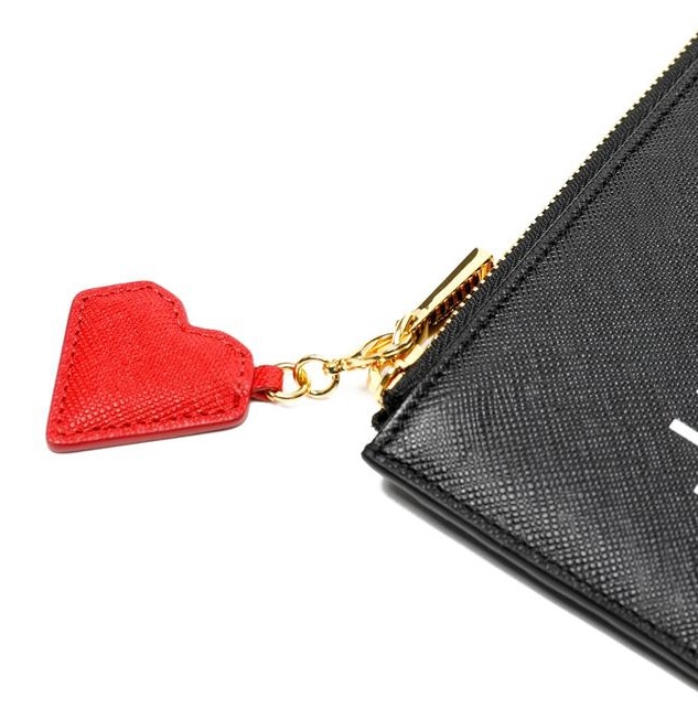 고급스러운 소가죽 바탕에 화이트 로고 레터링과 하트 참장식으로 포인트를 준 1단 장지갑입니다.