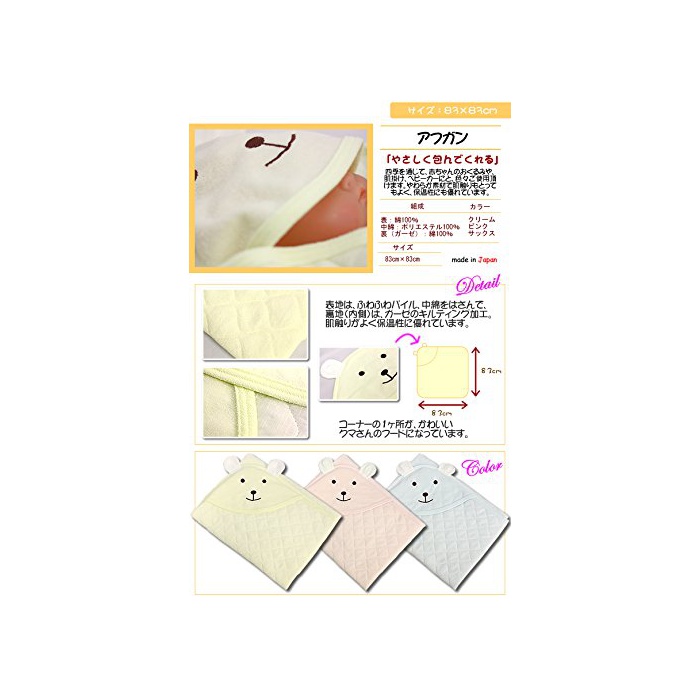 원본상품명: アフガン パイル 耳付クマ刺? 83cm×83cm 0070 日本製