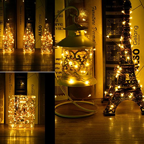 - Advanced Waterproof for Inside/Outside Use: Made from thin and bendable copper, 33 feet length, durable enough to experiment with any shapes. IP65 protection for copper wires string lights. Means that you could place it anywhere any weather.