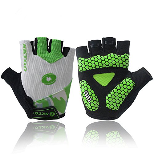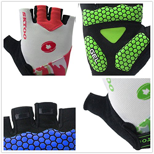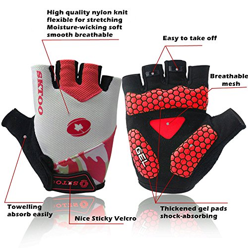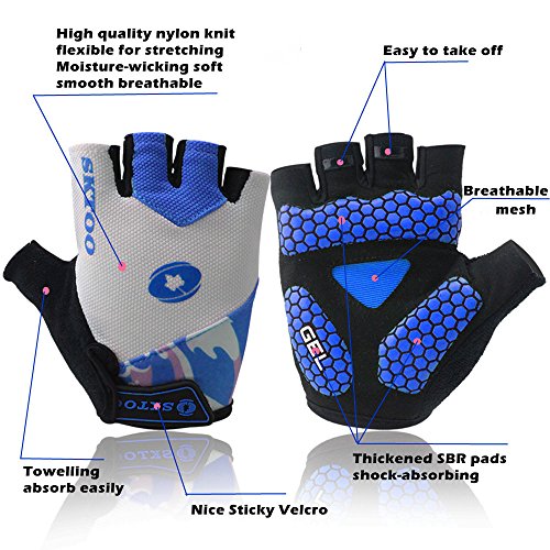 -. Feature : Gloves Material: high quality nylon,super knit fabric,microfiber.soft,lightweight,breathable,3 dimensional tailoring, moisture-wicking,comfortable for great fit / Special thickening SBR pads on the palm is shock-absorbing and works well as a buffer layer helps to to against calluses and blisters,cut down vibration and relieve hand fatigue,reduce numbness. / Skid-proof,Wear resistant "honeycomb"silica gel strips material provides the stable grip / Terry on the thumb easy to absorb,super stickity velcro can adjust the tightness easily / Low-carbon green environmental materials,exquisite nylon lines and workmanship offer good durability