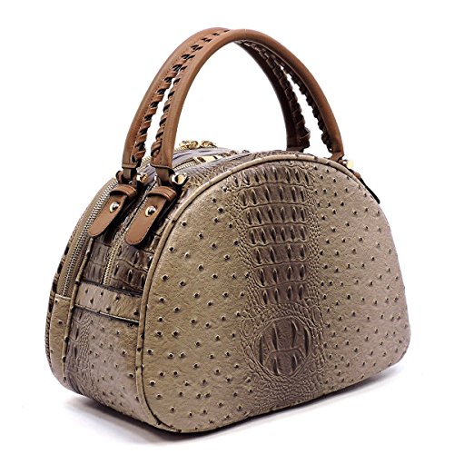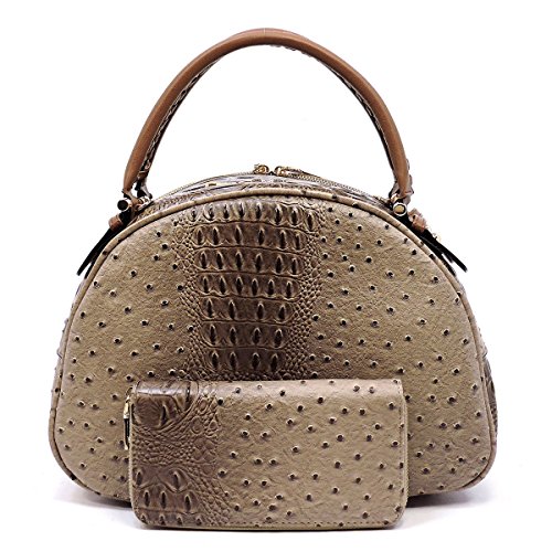 Studio : Western Fashion Publisher : Western Fashion Binding : Apparel Product Description New! Le Miel Ostrich/Croc Embossed, 2-Compartment Dome Satchel w/ Strap Wallet- Taupe