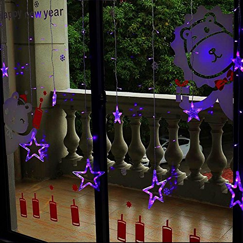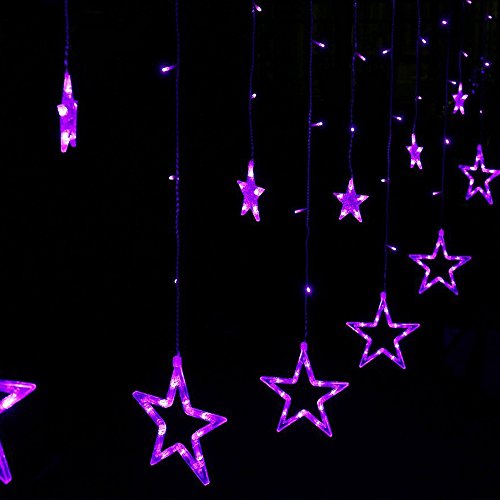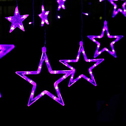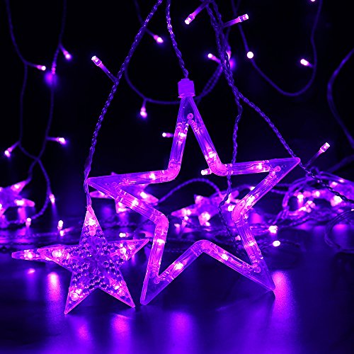 Curtain String Lights 138 LED 8.2ft Star Linkable (6 Small 6 Big), Power Operated Christmas Lights for Outdoor, Indoor, Bedroom, Party Decorations (Purple)