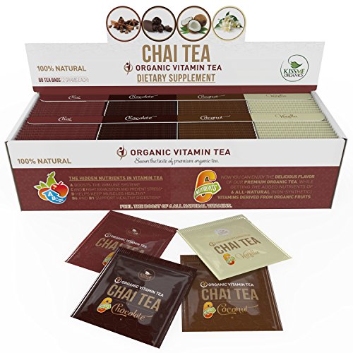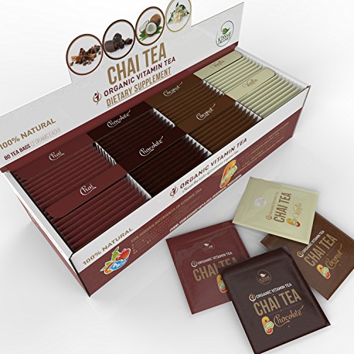 Organic Chai Tea - Variety Pack - Vitamin-Infused Chai Tea with 6 Added Vitamins from All-Natural Fruit Sources - 80 Tea Bags - 20 of Each Flavor (2...