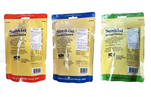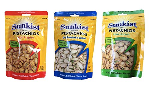 -. Title : 3 Packs 3 Flavors of Sunkist Pistachios,hot & Spicy , Lime & Chili, Dry Roasted & Salted, Delicious , Ready to Eat, Save!!