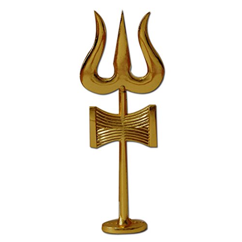 - Divya Mantra Traditional Trishul (Trident) Damru with Stand Brass Statue For Car Dashboard / Puja Ghar