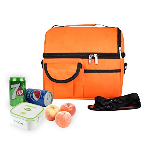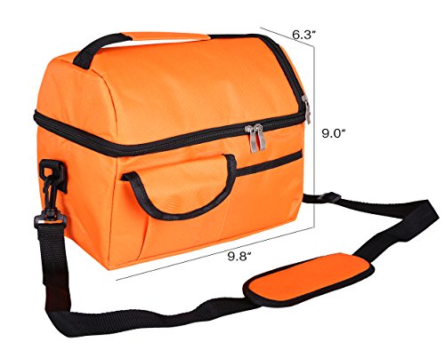 - Multiple Carry Options--This Lunch Bag is fashionable for men and women. A strong thick handle, highly stitched not tear easily, heavy-duty but not bulky, ensure your comfortable carry. A detachable and adjustable shoulder strap gives an alternative carry option.