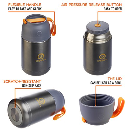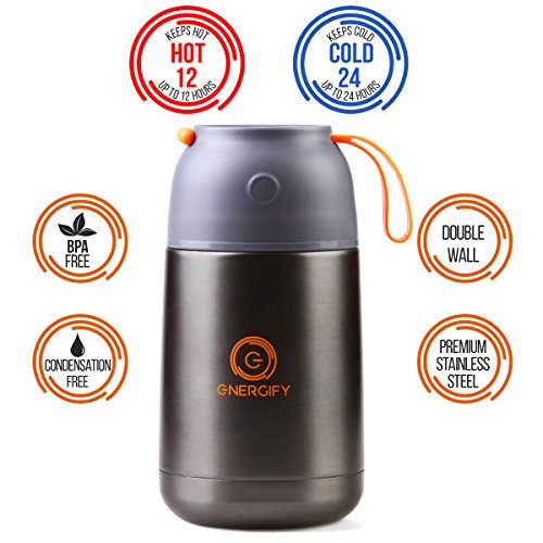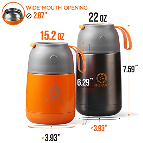 ULTRA-EFFECTIVE - ENERGIFYTM Thermos Food Jar, with its double wall technology, helps maintain desirable temperature of hot/cold food for extended hours, boasts leak-proof design, and comes in generous 22oz capacity to help carry sufficient soup or food.