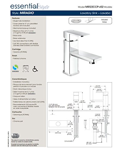 -. Feature : Mechanical pop-up included / Single hole installation / Solid brass body / Limited lifetime warranty