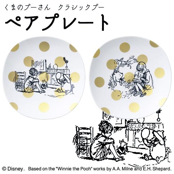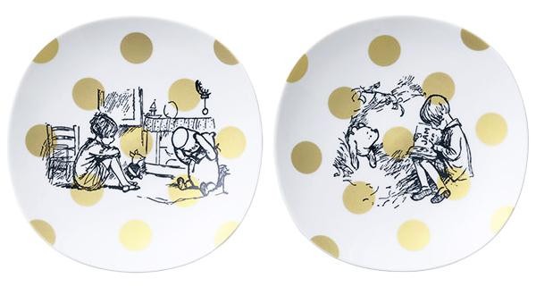 「くまのプーさん」の原画のワンシーンを、モノトーンのデザインで表現したペアプレートです。マットゴールドの水玉が少し大人可愛い雰囲気♪ |