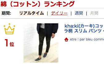 kha:ki(カーキ) コットン ポリウレタン ルーズポケット カモフラ柄 スリム パンツ・MIL-14FPT41A