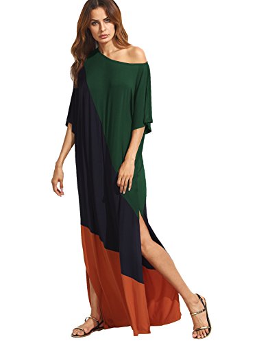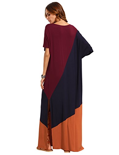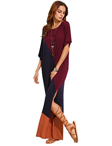 Round neck, short sleeve, full length, split side, contrast color