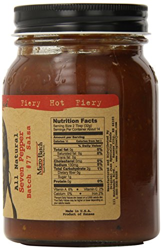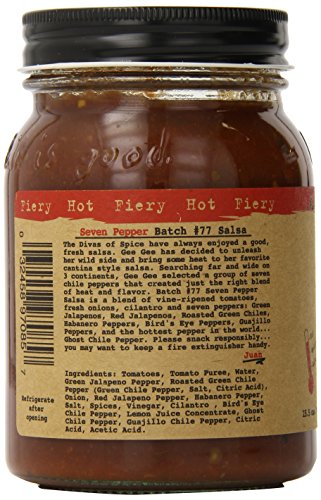 This salsa is a blend of vine-ripened tomatoes, fresh onions, cilantro and seven peppers: green jalapenos, red jalapenos, roasted green chilies, Habanero peppers, birds eye peppers, Guajillo peppers and the hottest pepper in the world. Ghost Chile Pepper