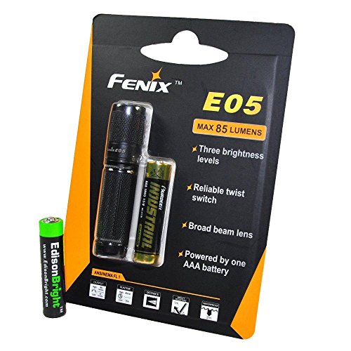 Fenix E05 black CREE XP-E2 85 Lumen LED keychain flashlight with EdisonBright AAA alkaline battery