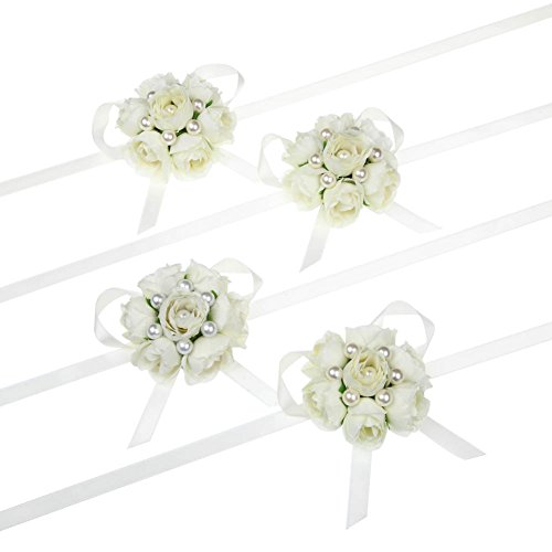 FAYBOX Girl Bridesmaid Wedding Wrist Corsage Party Prom Hand Flower Decor Pack of 4 Ivory