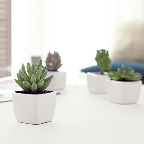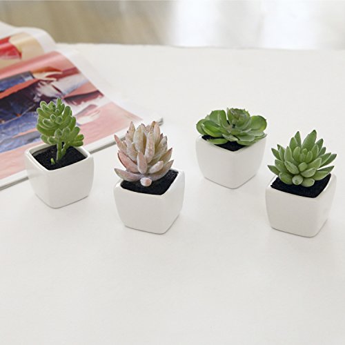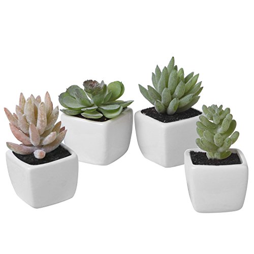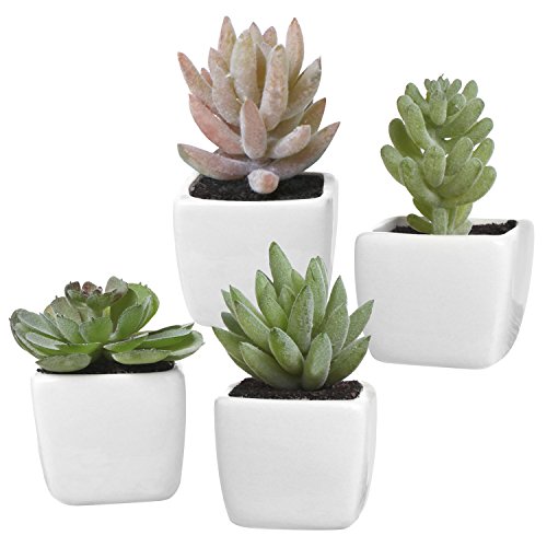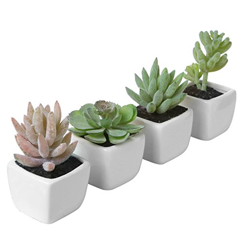 Assorted Lifelike Mini Artificial Succulent Plants in White Cube Ceramic Pots, Set of 4