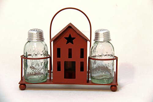 - Includes caddy and a set of mason jar salt and pepper shakers.