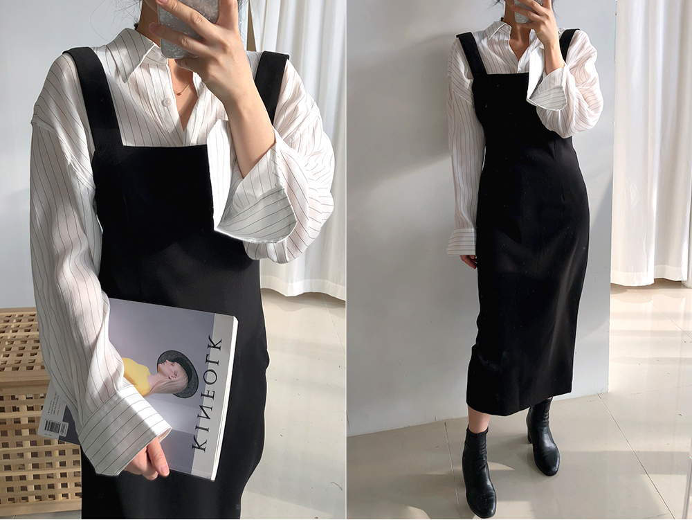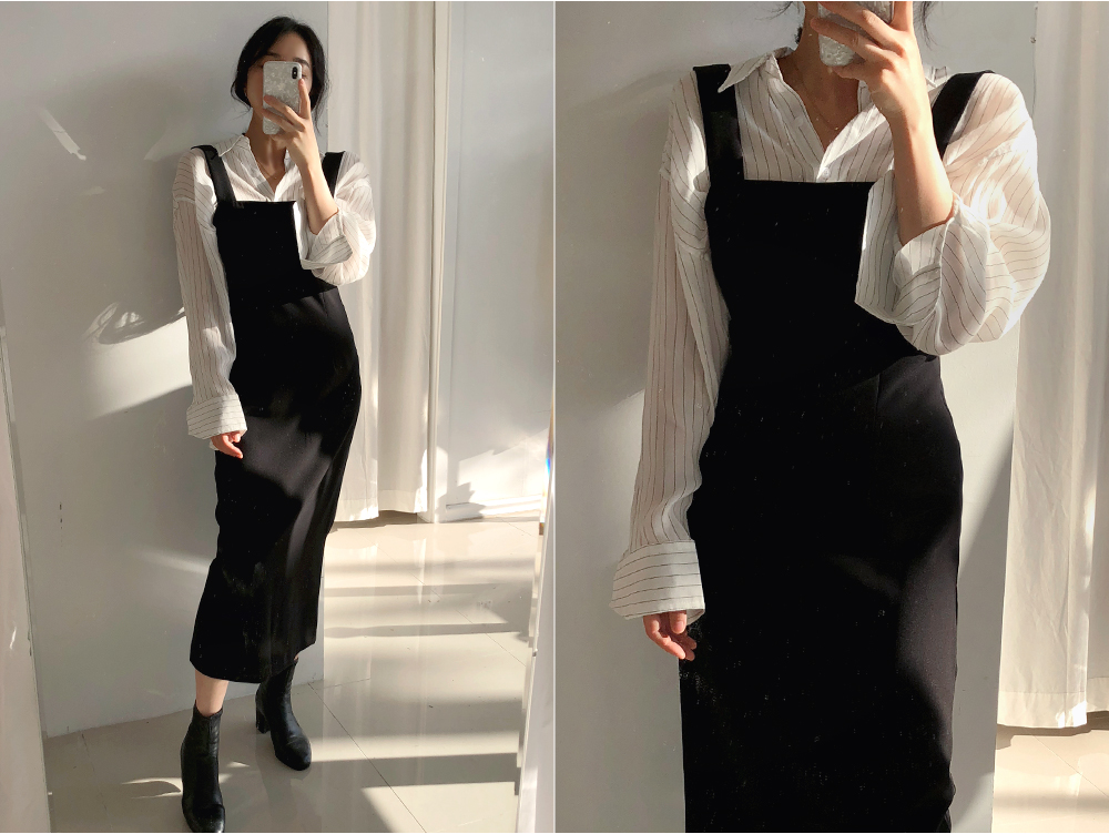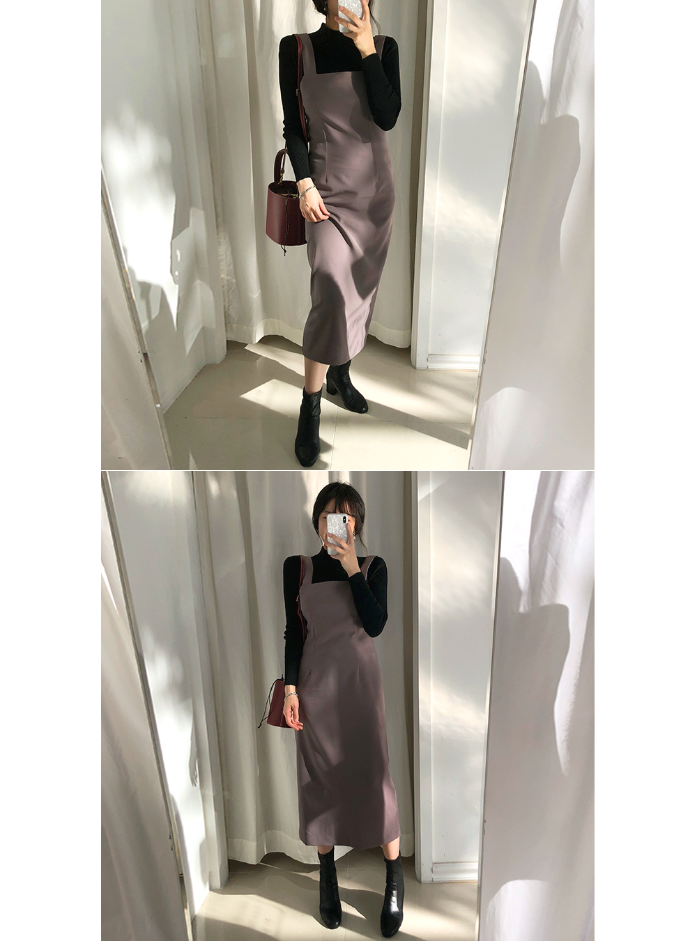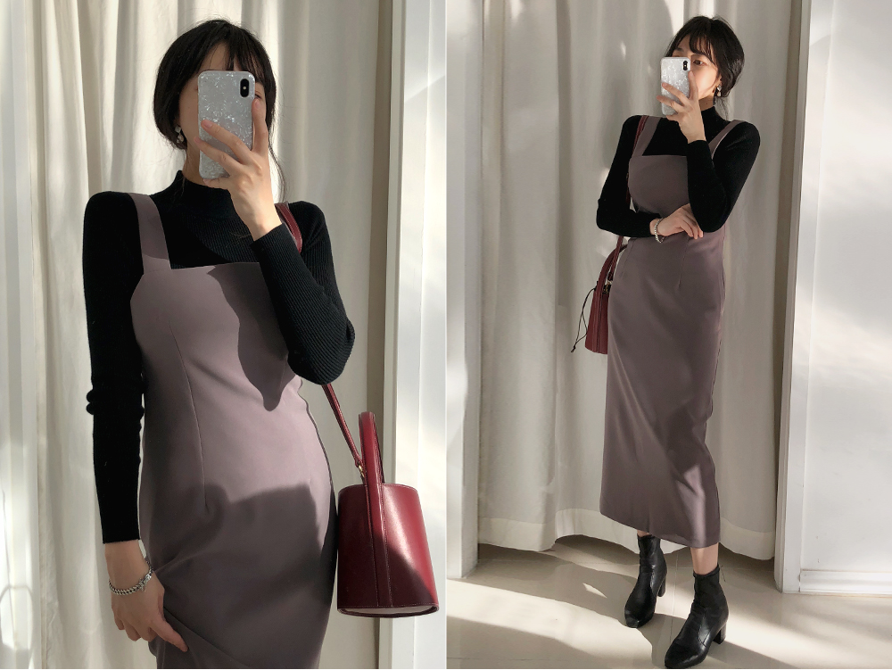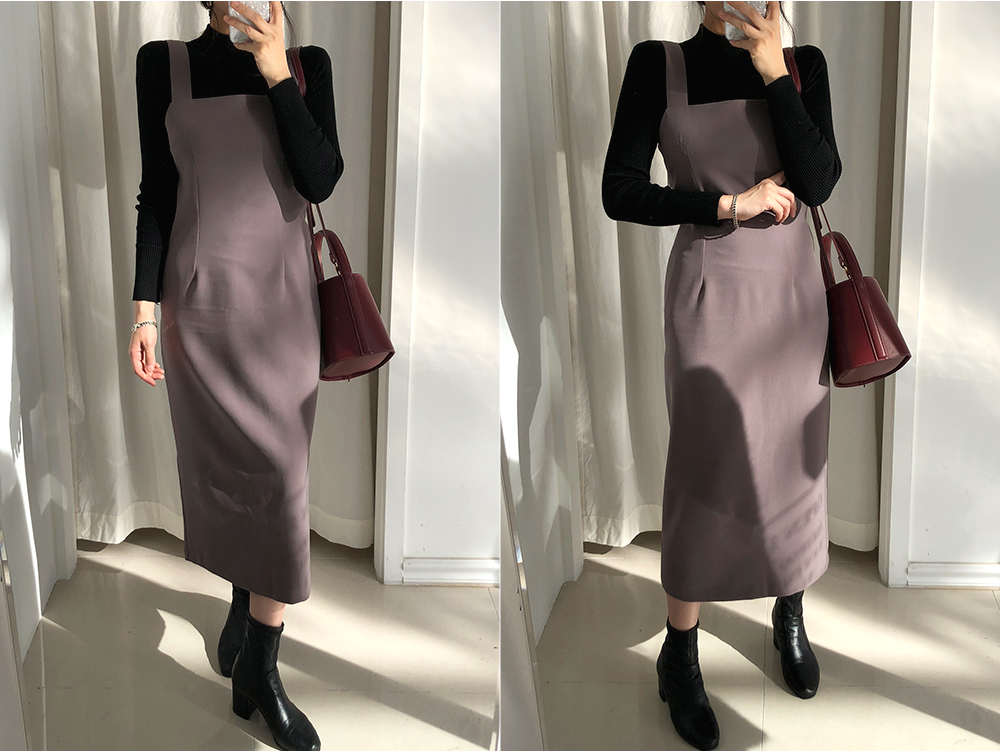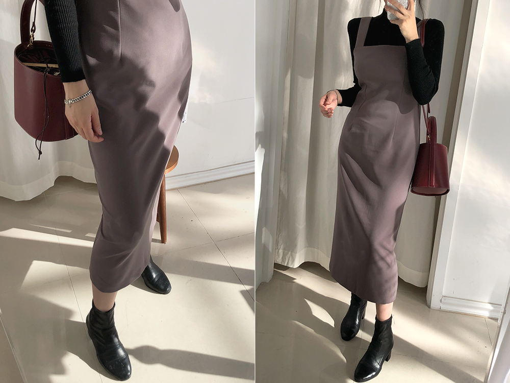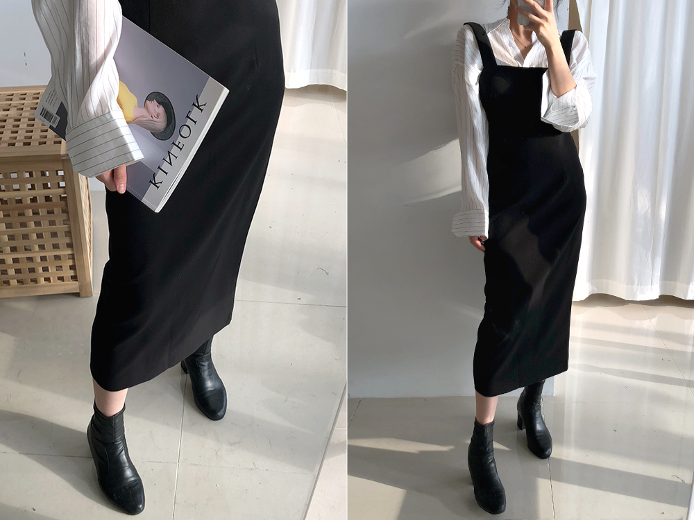 스퀘어 멜빵 뷔스티에 롱 원피스