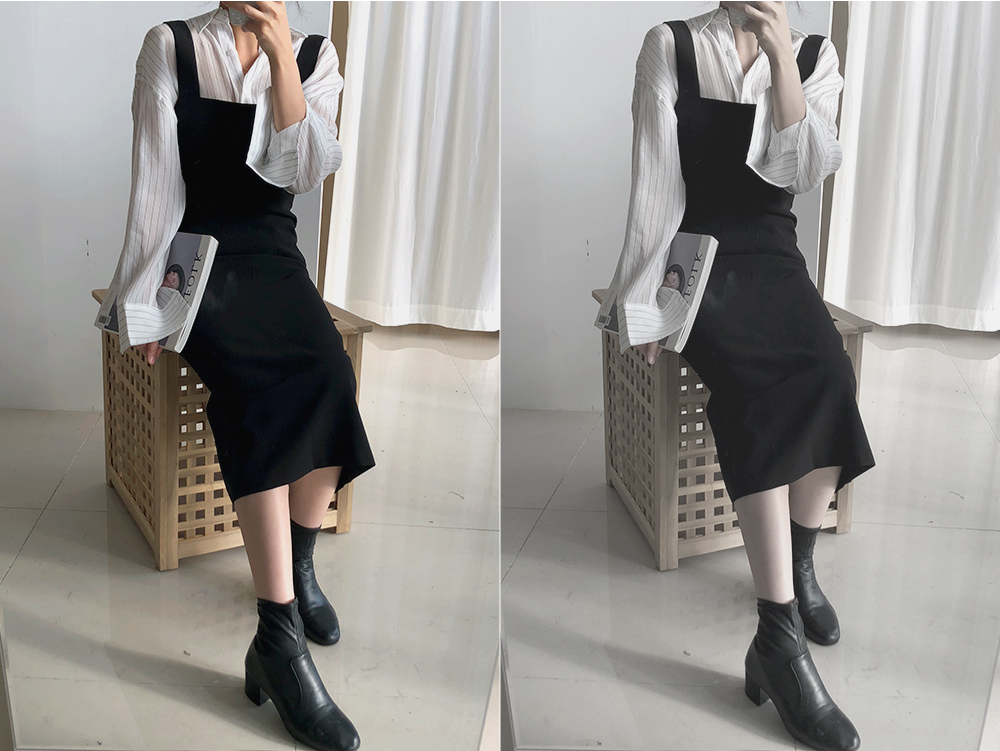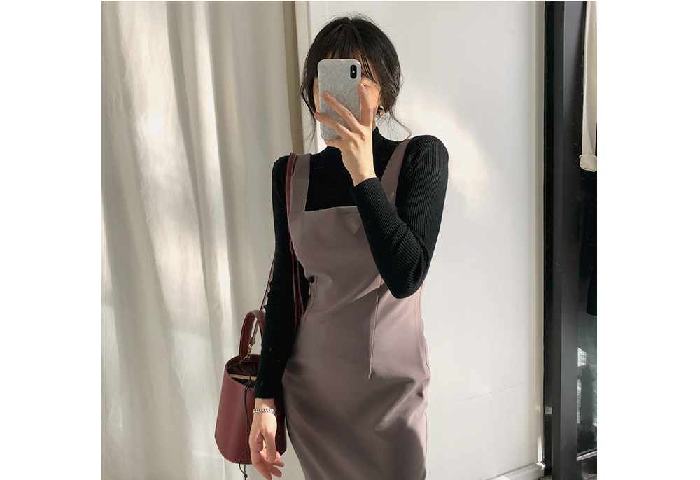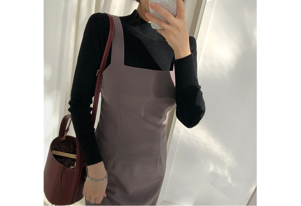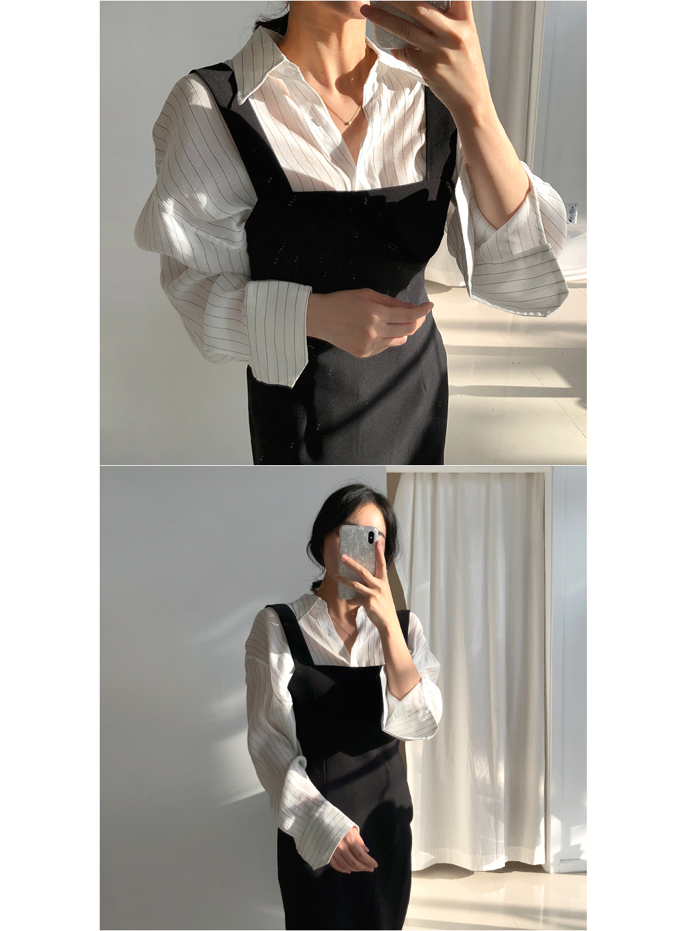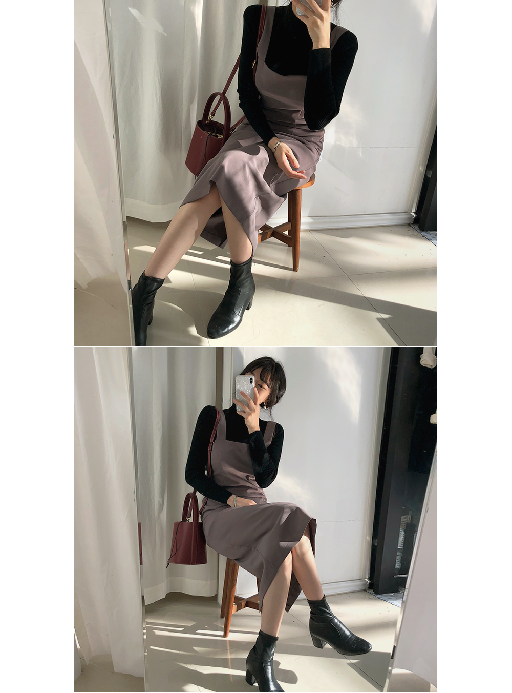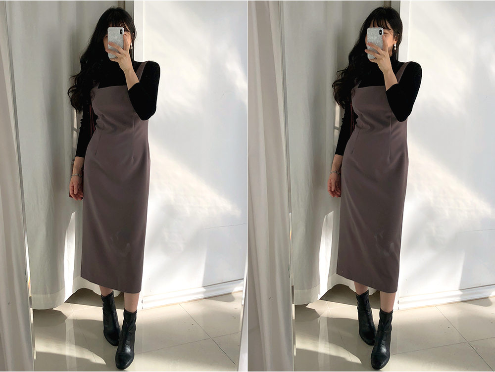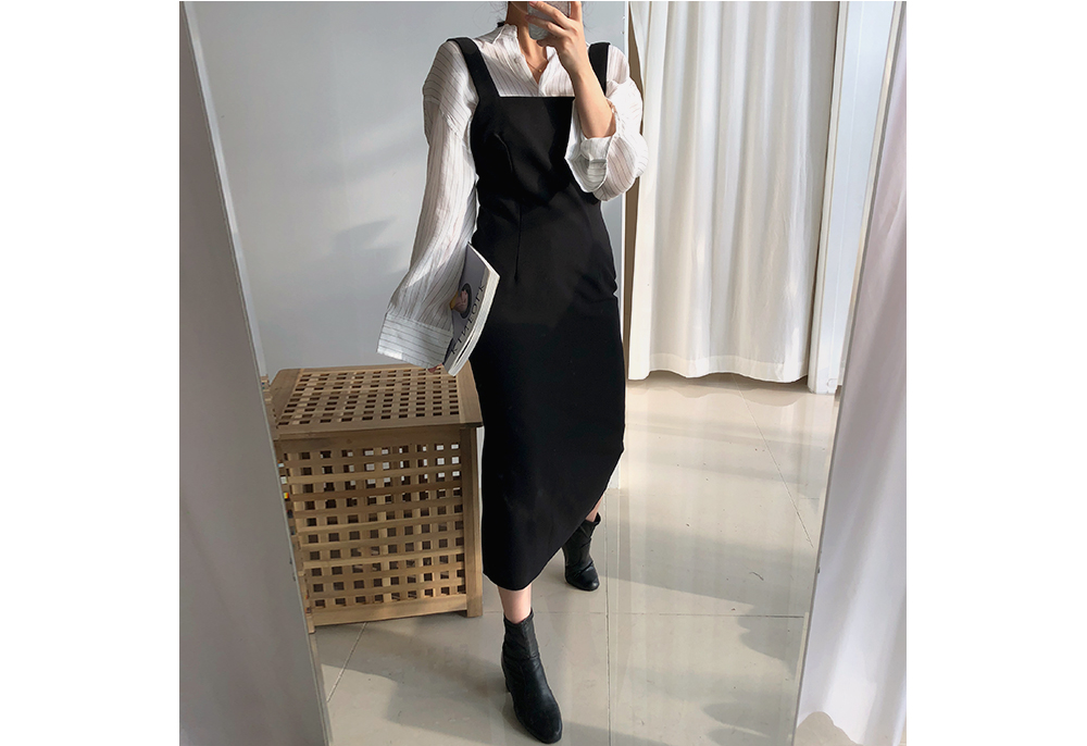 스퀘어 멜빵 뷔스티에 롱 원피스
