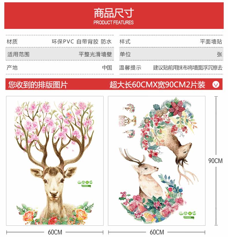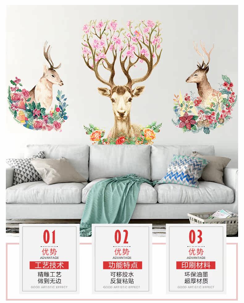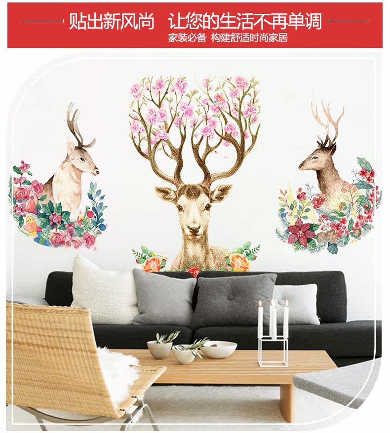 走廊玄关墙面贴画客厅房间可移除墙贴花卧室床头贴纸过道自粘墙贴