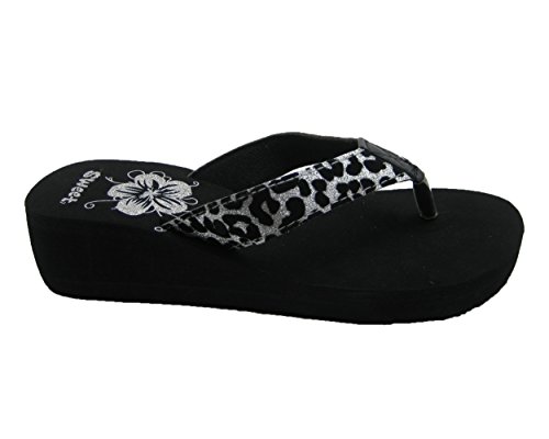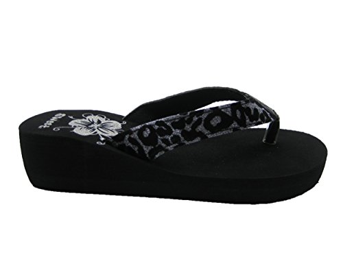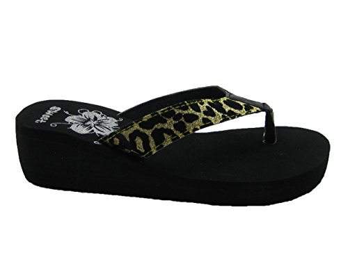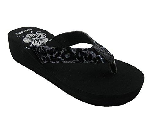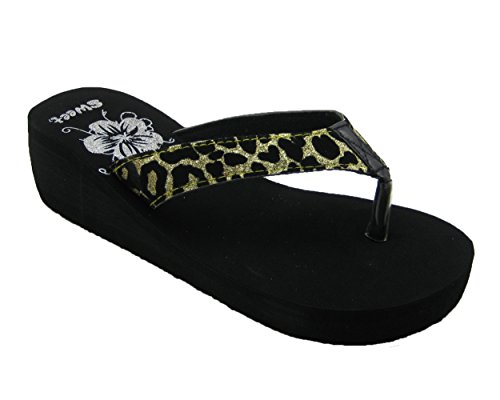 Product DescriptionClassic animal prints never goes out of style. This black wedge sandal features sparkly cheetah print for the sexy kitten in you.0