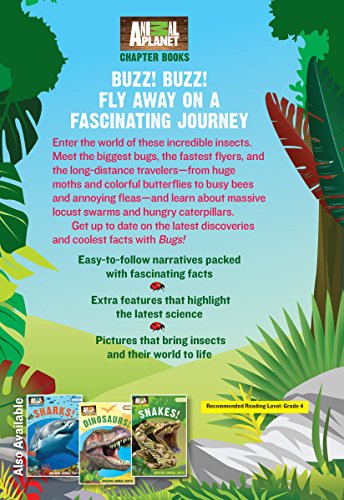 Animal Planet introduces information-packed nonfiction chapter books that are just right for pleasure reading and schoolwork.Fly away on a fascinating journey to the world of Bugs!. Meet the fastest flyers and the long-distance travelers--from huge moths and colorful butterflies to busy bees and annoying fleas. Learn about massive locust swarms and hungry caterpillars. Bugs! is the perfect overview for developing readers ready to explore this popular animal subject on their own. Special features include full-color photography throughout, "Meet the Scientist" sidebars, and "In Your Newsfeed" articles about amazing new discoveries.Don't miss the other books in the Animal Planet Chapter Books series: