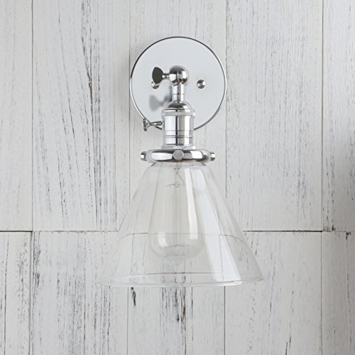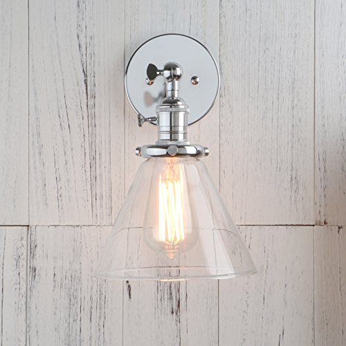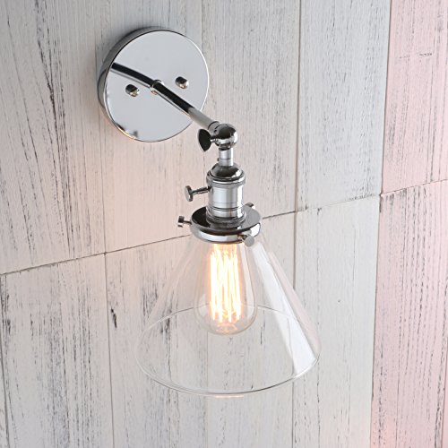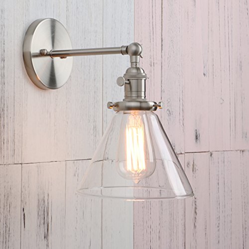 Features a swivel for easy arm adjustment and a clear glass shade.Can be mounted the shade with bulb facing upwards or hanging downwards. It also can be mounted on the ceiling and hung vertical as a flush ceiling.