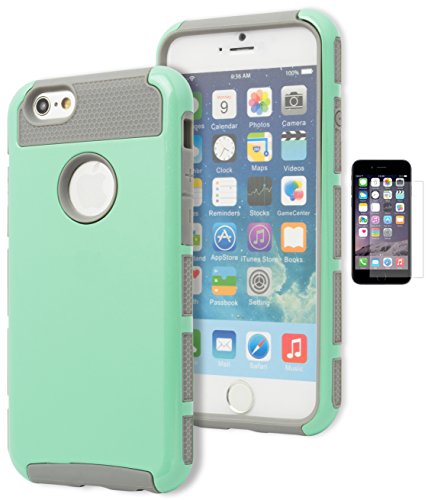 iPhone 6 Case, Bastex Heavy Duty Hybrid Protective Case - Soft Silver Grey Silicone Cover Hard Teal Case for Apple iPhone 6, 4.7"**INCLUDES SCREEN PROTECTOR**