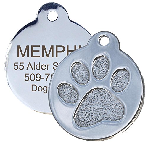 (GoTags)/Pet Supplies/Collars, Harnesses Leashes/DIRECT FROM USA/Paw Print Round Stainless Steel Pet ID Tags - Dog and Cat ID Tags.