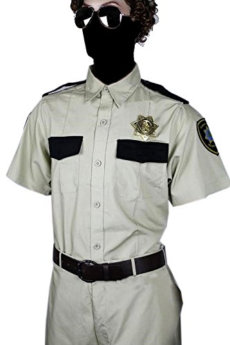 -. Feature : Khaki Sheriff costume shirt / Matching Shorts / Sheriff Badge / Sunglasses to complete the look / Free Shipping