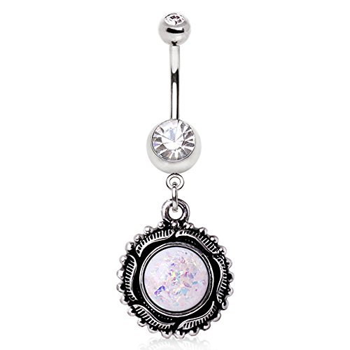 Product Description316L Navel Ring with Synthetic Opal Vintage Brooch Dangle0