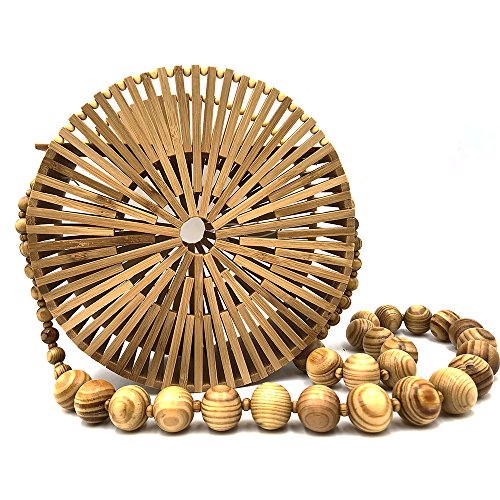 Bamboo Shoulder Bag Round, Handmade Messenger Bag for Women