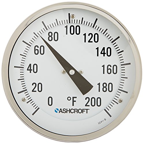 Ashcroft Series EI Stainless Steel Case Bimetal Thermometers, 5" Dial Size, 1/2" NPT Every angle Connection, 2.5" Stem Length, 0/250 Degrees Fahrenheit