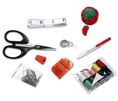 - Included Accessories - Notions Package includes these essential items: Scissors, Tape Measure, Straight Pins, Needles, Needle Threader, Thimble, Stitch Ripper and Thread (in 10 assorted colors).