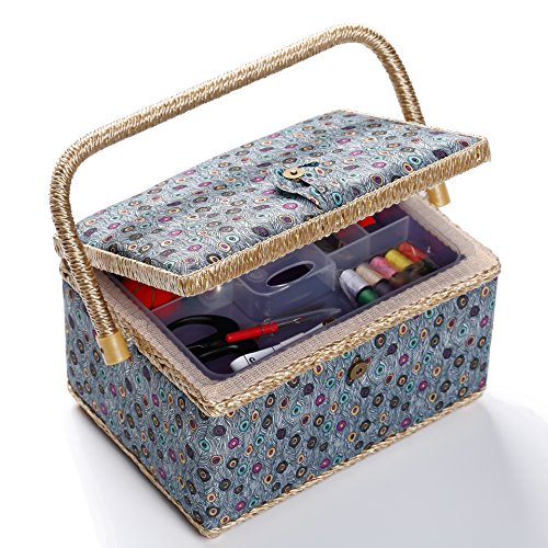 bbloop Medium Vintage Sewing Basket with Notions Package - Blue Peacock Style