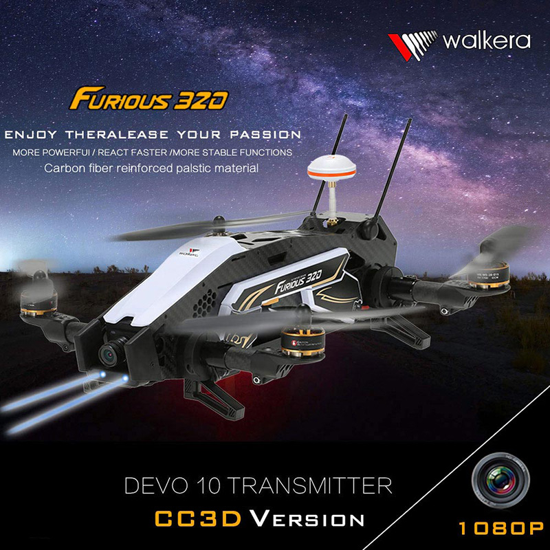 A completion level of ready-to-fly means this version of the Furious 320 Quadcopter with 1080P Camera from Walkera comes factory-assembled. Its speed can up to 120km/h, able to fly faster and more stably and it has smaller angle when the racer leans forward. The racer can rotate, roll, and flip freely. HD Camera can record every wonderful moment, which enables the user to experience the excitement and passion! The 5.8G real-time image transmission system and OSD function will bring you unforgettable visual enjoyment. Such a great racer, how can you miss it? Just get it to have an unprecedented feast.