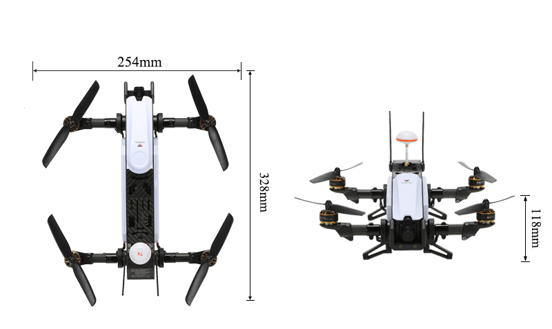 Quadcopter dimension: 328 * 254 * 118mm